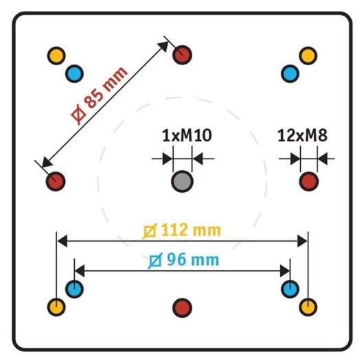 Hartafstanden tbv montage parasol | 11,2 cm. |