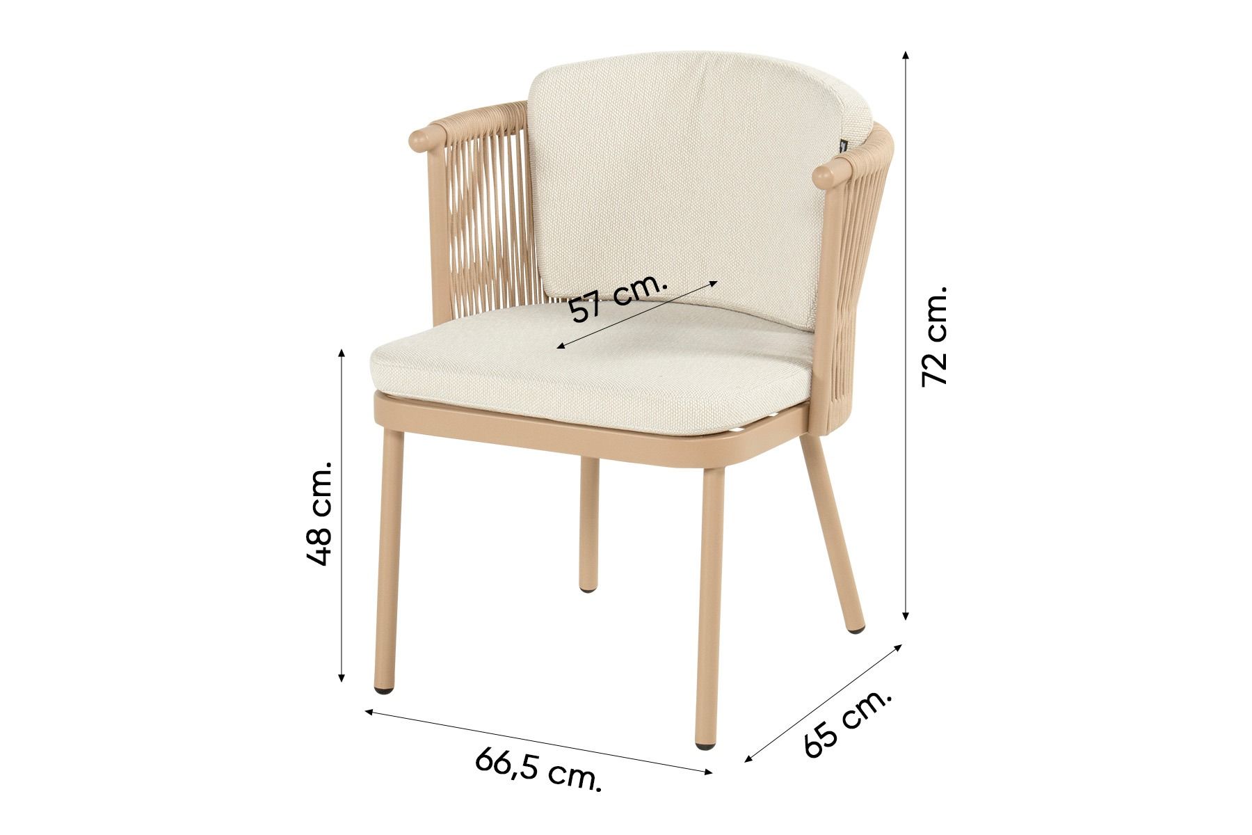 De Toledo diningstoelen in deze set van 4 zijn gemaakt van een onderhoudsvriendelijk aluminium frame, afgewerkt met weerbestendig rope in een warme cappuccino kleur. Zo creëer je een rustige en sfeervolle uitstraling aan je tuintafel. De comfortabele zit en rugkussens zijn uitgevoerd in weerbestendig Weather Ready textiel, zodat je ook bij een buitje gewoon kunt blijven genieten. Zoals je van Hartman mag verwachten, staat ook deze set garant voor duurzaamheid en prettig zitcomfort. De Toledo maakt deel uit van de Shades of Colour lijn van Hartman, met kleuren en modellen die mooi op elkaar aansluiten voor een passend geheel in je tuin.