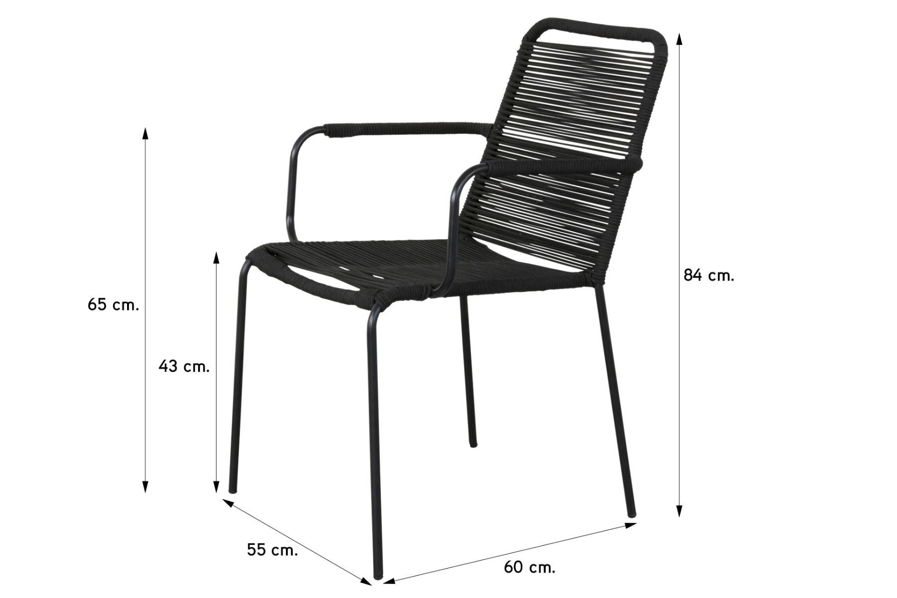 Set van 4 - Denver Rope stapelbare stoel - Zwart
