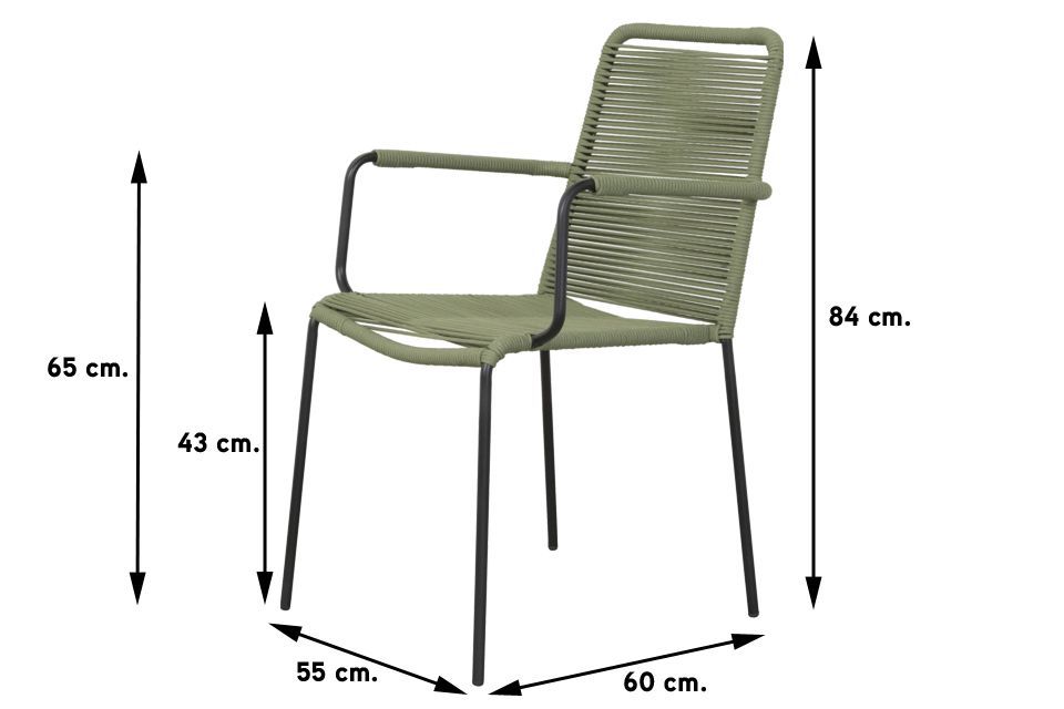 Het frame van de Denver tuinstoel is gemaakt van staal en daardoor erg stevig. De zit- en rugleuning zijn gemaakt van rope. Rope is een stevig touw dat bestand is tegen diverse weersinvloeden en niet snel verkleurt. Dit materiaal zie je steeds vaker terug in tuinmeubelen en is dan ook helemaal hip! De Denver tuinstoel is stapelbaar en dus ook handig op te bergen als je de rope tuinstoel niet gebruikt.
