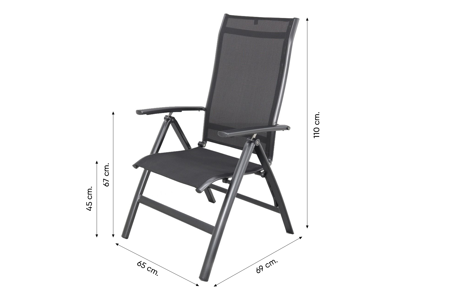 Het frame van de stoelen is gemaakt van lichtgewicht aluminium, roestvrij en makkelijk te verplaatsen. De zitting is van hoogwaardig textileen: comfortabel, weerbestendig en onderhoudsarm. En na gebruik? Dan klap je de stoelen eenvoudig in en berg je ze compact op. Kwaliteit van Duitse bodem, gemaakt voor jarenlang zorgeloos buiten genieten.