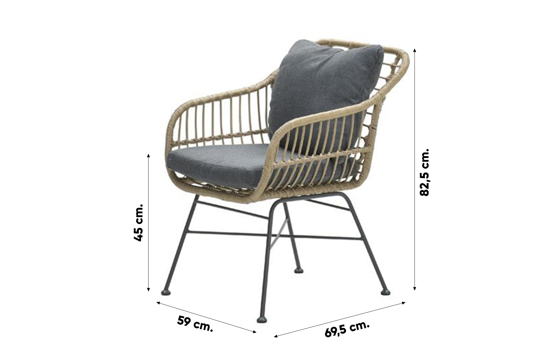Het frame van de Margriet tuinstoel is gemaakt van staal. Een onderhoudsvriendelijk materiaal dat bestand is tegen de meeste weersinvloeden. Daarbij is het licht van gewicht en erg stevig! Om het frame is bruin wicker gevlochten. Dit geeft de unieke uitstraling aan deze stoel. De meegeleverde kussens hebben een antraciet kleur die helemaal van deze tijd is. De kussens hebben ook een waterafstotende coating. Dit betekend niet dat ze waterdicht zijn, wel kan je gemorst drinken er zo vanaf vegen!