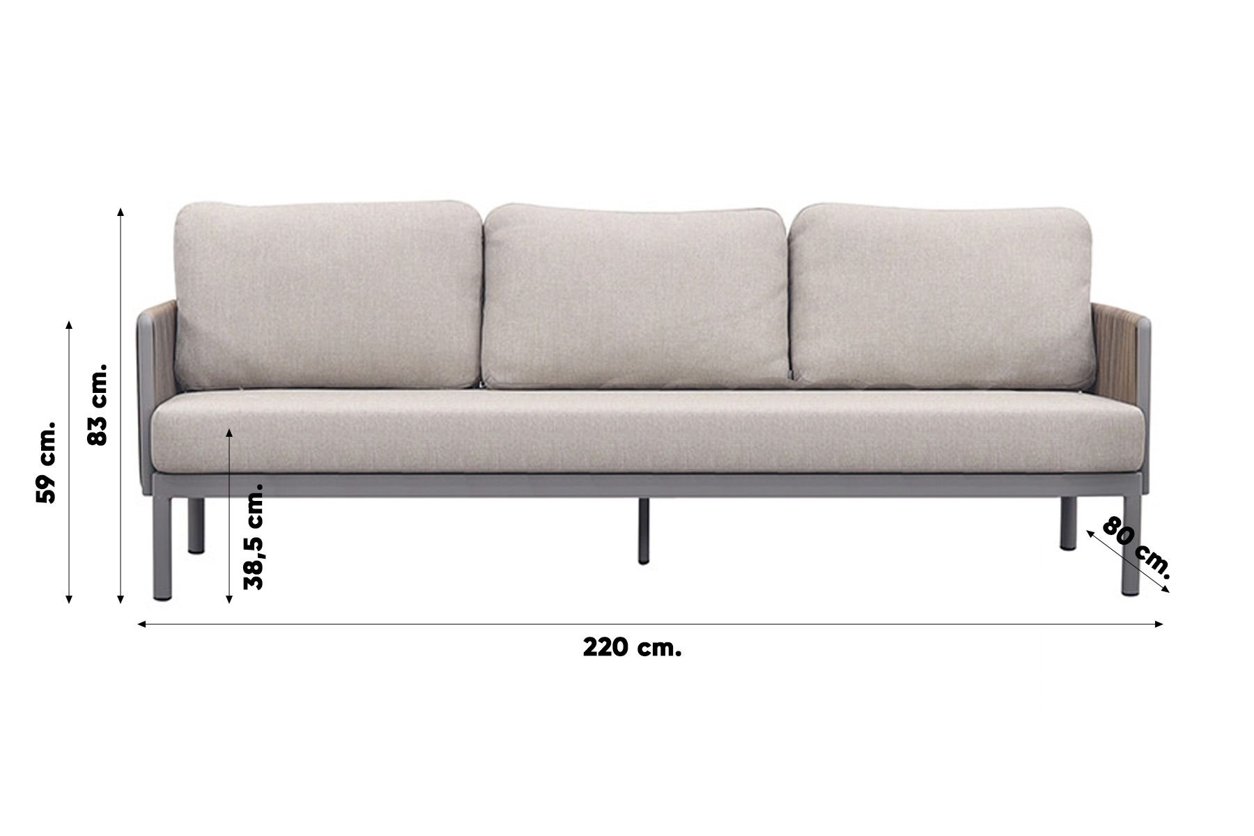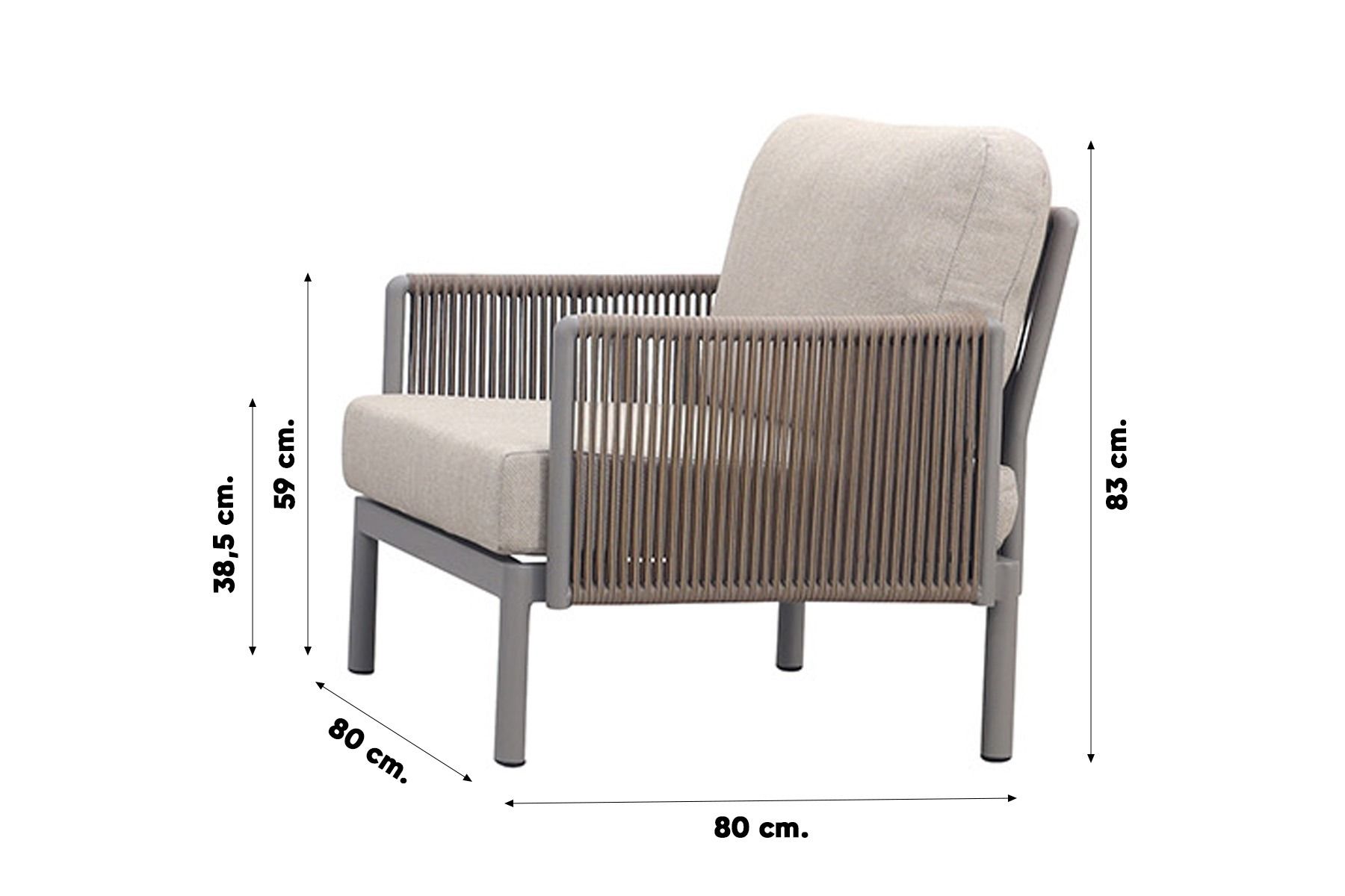 Creëer een stijlvolle en gezellige plek in je tuin met de Sierra Stoel-Bank Loungeset! Deze set combineert een comfortabele 3-zits bank met twee ruime loungestoelen en een bijpassende koffietafel. Ideaal voor lange middagen in de zon of gezellige avonden met vrienden en familie. De zandkleurige kussens zijn heerlijk zacht en weerbestendig, zodat je zorgeloos kunt genieten, zelfs na een regenbui. Het moderne grijze aluminium frame in combinatie met de naturel kleurige rope armleuningen geeft deze set een frisse en speelse uitstraling. Perfect om jouw tuin of terras een luxe sfeer te geven! Zie jij jezelf al genieten in de Sierra stoel-bank loungeset? Bestel eenvoudig online of kom langs in een van onze showrooms in Opheusden, Apeldoorn of Duiven om zelf het comfort te ervaren.