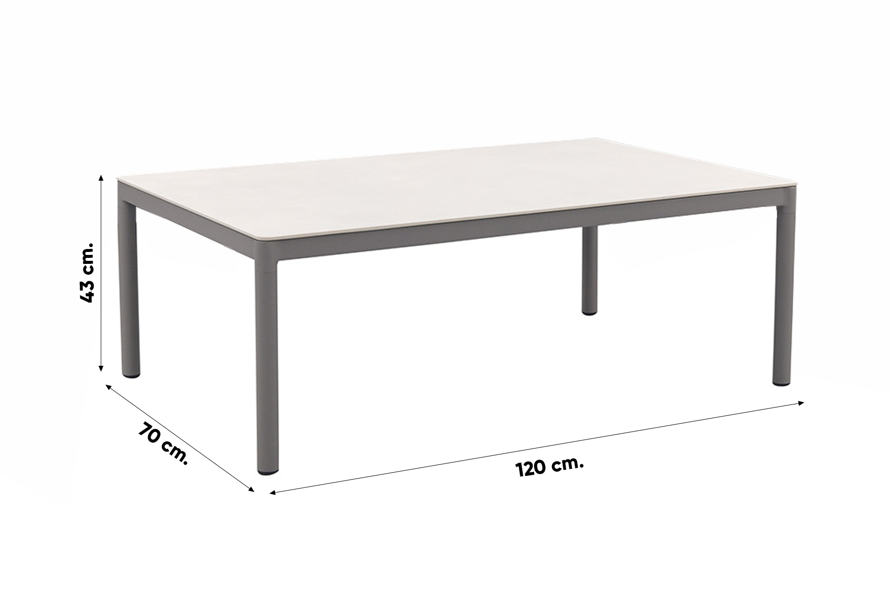 Deze loungeset is ontworpen met oog voor comfort en duurzaamheid. Het grijze aluminium frame is gepoedercoat, waardoor het roestbestendig, stevig en toch licht van gewicht is. De zachte kussens zijn weerbestendig en makkelijk schoon te maken, zodat ze altijd gebruiksklaar zijn. De bijpassende koffietafel heeft een luxe keramieken tafelblad in een lichte ecru tint, dat krasbestendig is – perfect voor dagelijks gebruik. Dankzij het slimme ontwerp en de materialen haal je met de Sierra stoel-bank loungeset een combinatie van stijl en gemak in huis. Maak van jouw tuin een plek waar je altijd wilt zijn!