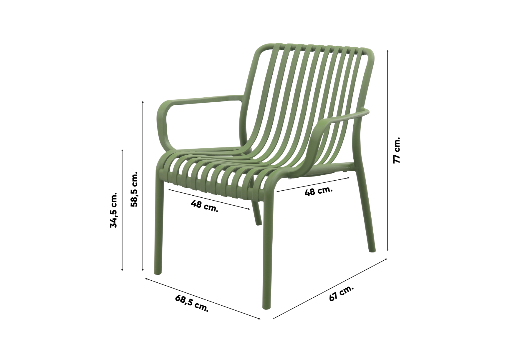 Ontdek de Stripe loungestoel, gemaakt van hoogwaardig kunststof en uitgevoerd in een elegante mosgroene kleur. Deze stoel is een ideale aanvulling op elke buitenruimte en past bij elke stijl. Het duurzame, weerbestendige kunststof is perfect voor het Nederlandse klimaat en bovendien zeer onderhoudsvriendelijk. Door het lichte gewicht kun je de stoel eenvoudig verplaatsen in je tuin. Beleef het buitenleven op zijn best met de comfortabele en praktische Stripe loungestoel.