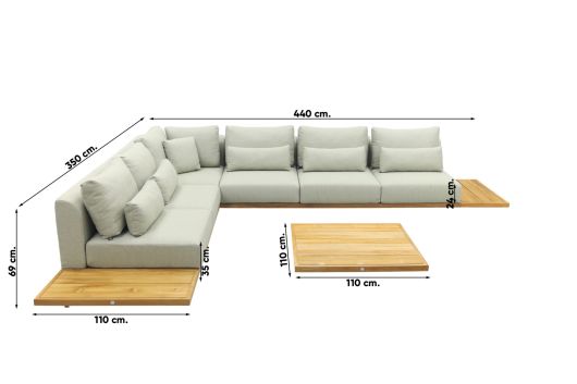 Het begint allemaal bij een stevige basis. Bij de Suns Aspen is er gekozen voor een stevig teakhouten frame. Teakhout is een harde houtsoort en bestand tegen alle weertypen. Daarnaast heeft het een warme uitstraling en zal het door de jaren heen grijzig verkleuren. Hierdoor krijgt het hout nog meer charme. Mocht je toch de voorkeur hebben om de originele kleur te behouden dan adviseren wij om het teakhout te behandelen met een teakprotector. Om vlekken te voorkomen kun je de teak tafel ook behandelen met een teak shield. Dit onderhoudsmiddel zorgt er tevens voor dat het teak water- en vuilafstotend is. De houten loungeset is gemaakt van gecertificeerd teakhout, dat houdt in dat het hout niet illegaal gekapt is. Wel zo fijn om te weten! De kussens van de loungeset zijn rijk gevuld en voelen comfortabel aan. De vulling is gemaakt van Quick Dry Foam waardoor de zitting en rugleuningen snel drogen na een regenbui.
