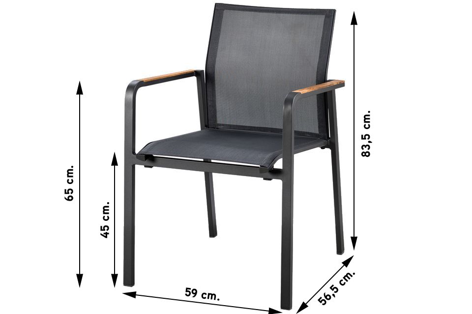 Suns Tutti stapelbare tuinstoel - Antraciet met teak armleuning