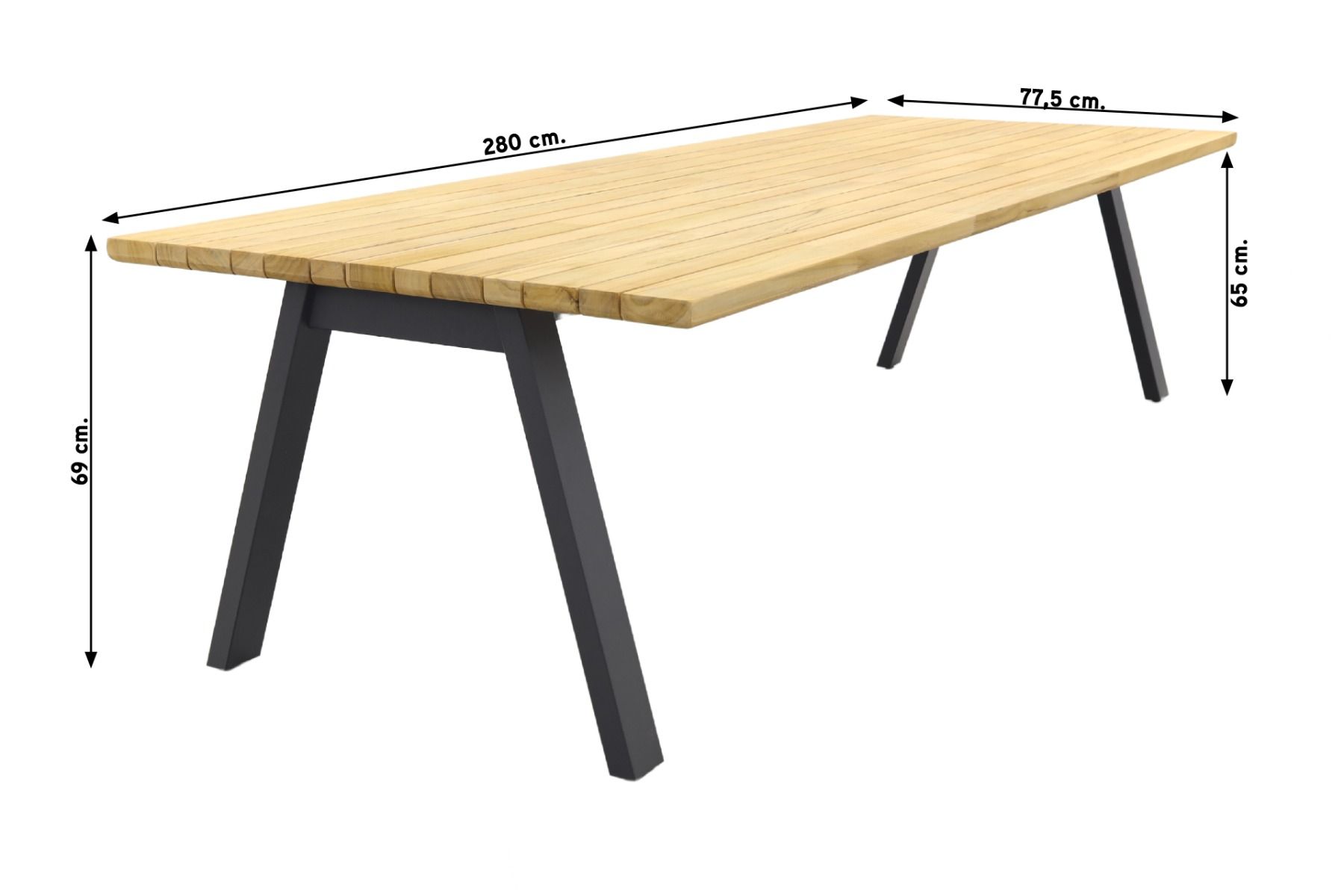De Ambassador tuintafel van Taste heeft een teakhouten blad. Teak hout is een harde houtsoort en daarmee perfect geschikt voor het gebruik in tuintafels. Teak hout zal na verloop van tijd gaan verkleuren en haarscheurtjes gaan vertonen. Dit is niet erg want het maakt de tafel juist nog stoerder. Mocht je de voorkeur hebben om de originele kleur te behouden van het teak hout. Dan adviseren wij om de tafel te behandelen met een protector. Om vlekken te voorkomen kun je de teak tafel ook behandelen met een teak shield. Dit onderhoudsmiddel zorgt er tevens voor dat het teak water- en vuilafstotend is. Let op dat je de teak tuintafel nooit afdekt met een hoes. Wanneer het tafelblad volledig afgesloten wordt kan het niet “ademen” en kunnen er lelijke vlekken ontstaan. De aluminium poten zijn behandeld met een matte coating in antraciete kleur. Deze coating zorgt ook voor bescherming tegen krassen en stoten.