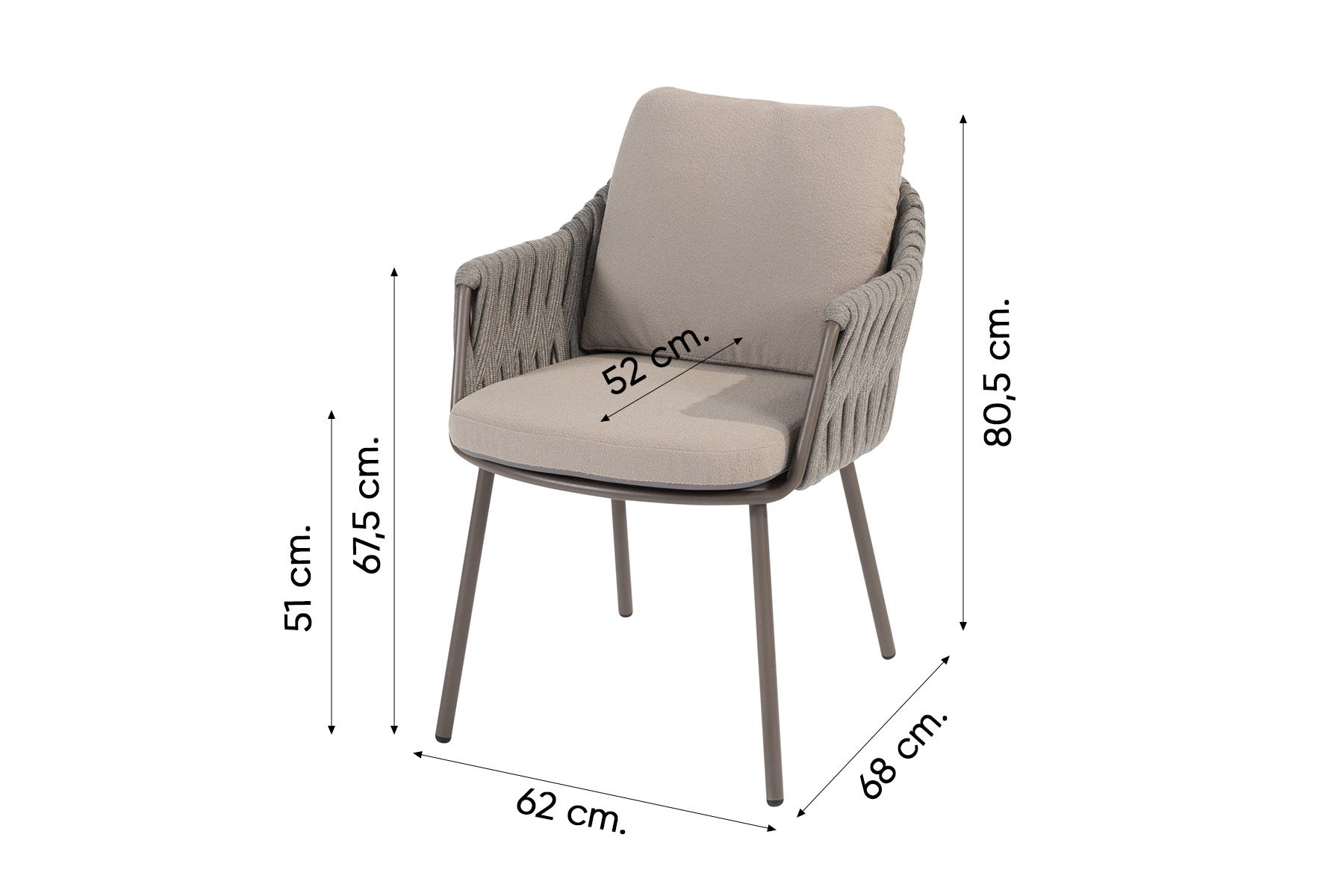 Rope (touw) is een prachtig zacht materiaal met een hippe uitstraling en weerbestendige eigenschappen. Het materiaal vergt weinig onderhoud, mocht je het rope schoon willen maken dan adviseren wij om de Wicker en textileen cleaner van 4-Seasons te gebruiken.