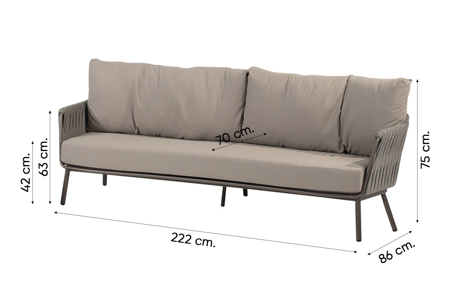Rope (touw) is een prachtig zacht materiaal met een hippe uitstraling en weerbestendige eigenschappen. Het materiaal vergt weinig onderhoud, mocht je het rope schoon willen maken dan adviseren wij om de Wicker en textileen cleaner van 4-Seasons te gebruiken.