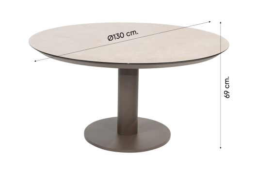 - Ronde keramische tafel Ø130 cm met onderhoudsvriendelijk blad