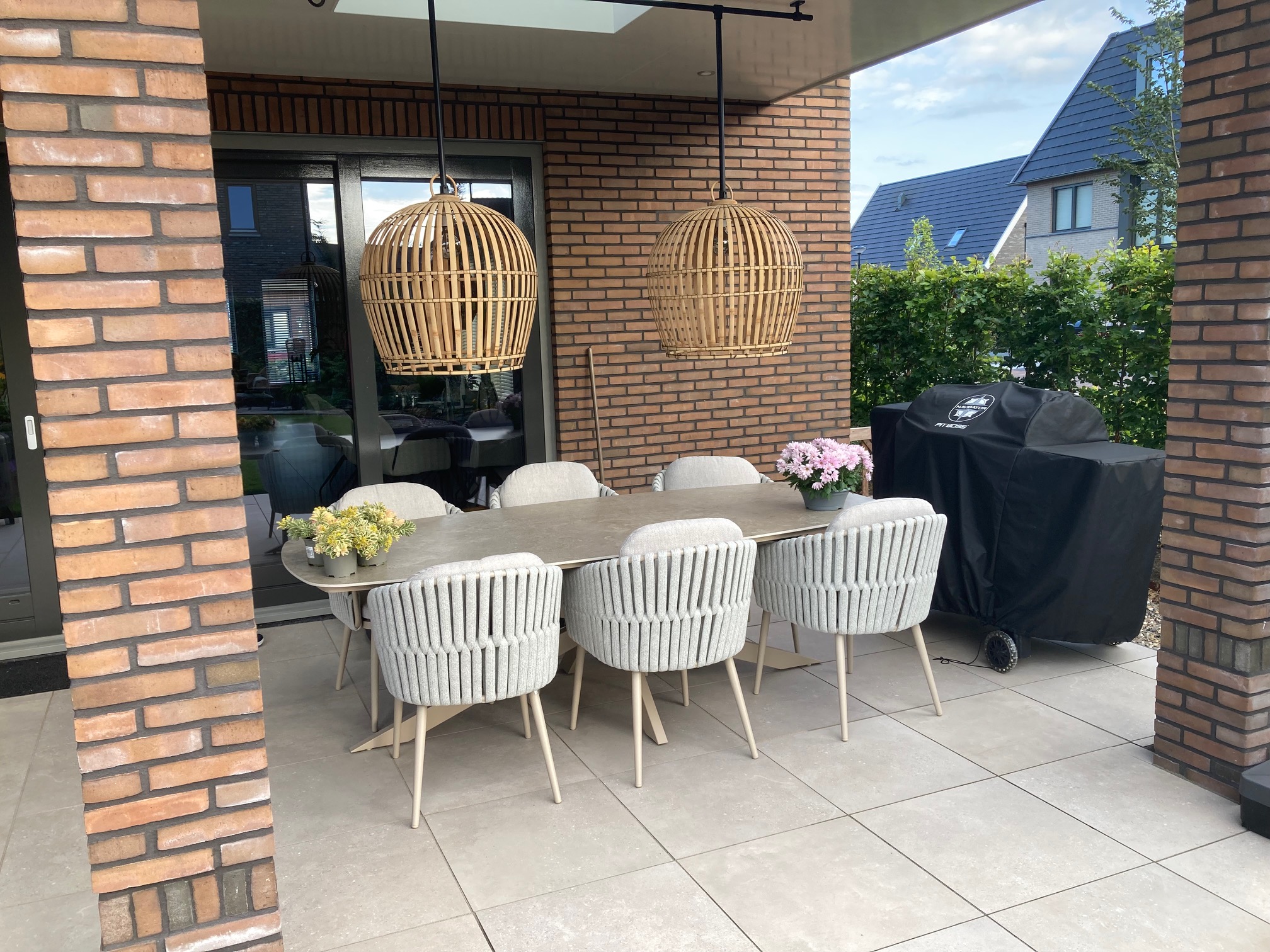 Maak jouw tuin compleet met de stijlvolle combinatie van de Taste Prado Deens ovale tuintafel en de Eva tuinstoelen. De Eva stoelen hebben een rustige en verfijnde uitstraling dankzij hun brede rope-afwerking en zachte kleuren. Met de meegeleverde kussens zit je niet alleen comfortabel, maar voeg je ook extra sfeer toe aan je buitenruimte. De Taste Prado tuintafel sluit hier perfect bij aan met zijn latte-kleurige kruispootontwerp en luxe marmerlook tafelblad. Dankzij de royale afmetingen is deze set ideaal om met 6 personen te genieten van het buitenleven. Bestel direct online of bezoek onze showrooms in Opheusden, Duiven of Apeldoorn om de set zelf te bewonderen!