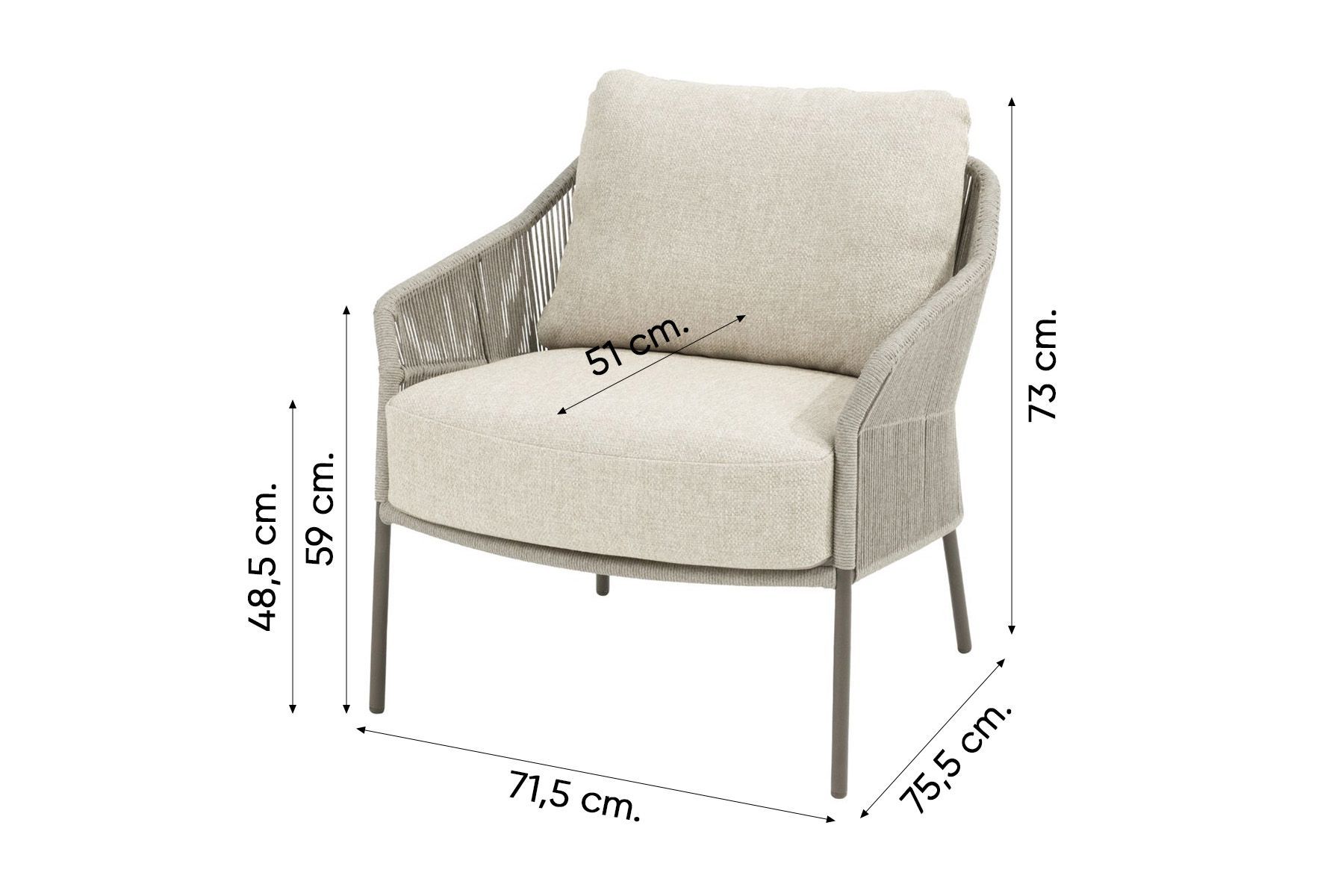 Rope (touw) is een prachtig zacht materiaal met een hippe uitstraling en weerbestendige eigenschappen. Het materiaal vergt weinig onderhoud, mocht je het rope schoon willen maken dan adviseren wij om de Wicker en textileen cleaner van 4-Seasons te gebruiken.