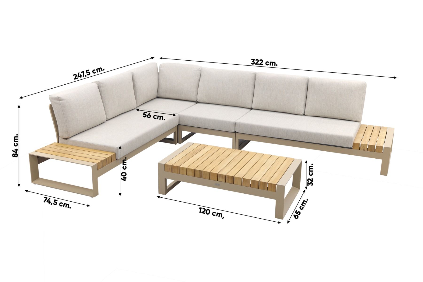 - Gemaakt van teak, aluminium en olefin kussens