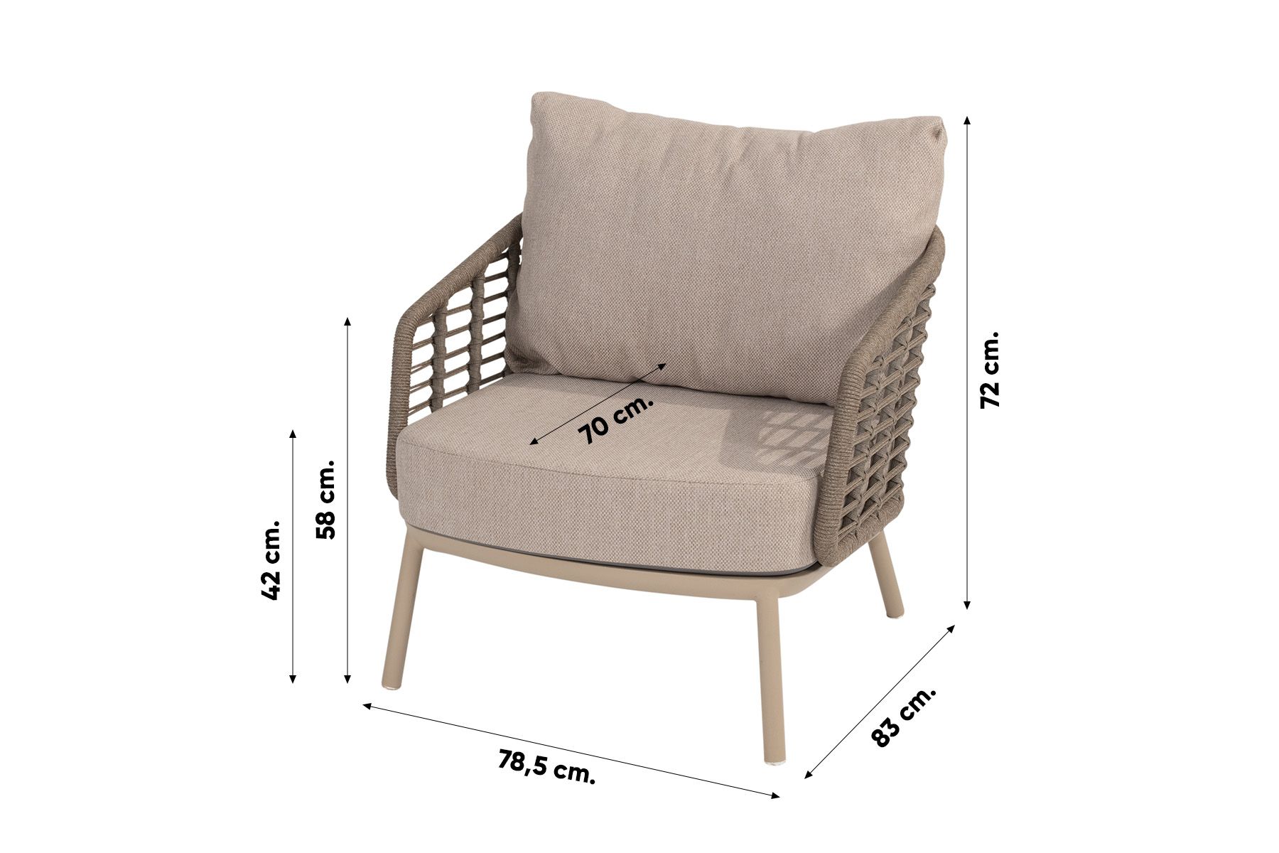 Rope (touw) is een prachtig zacht materiaal met een hippe uitstraling en weerbestendige eigenschappen. Het materiaal vergt weinig onderhoud, mocht je het rope schoon willen maken dan adviseren wij om de Wicker en textileen cleaner van 4-Seasons te gebruiken.