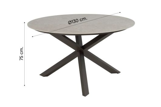 - Ronde keramische tuintafel Ø130 cm met kruispoot onderstel