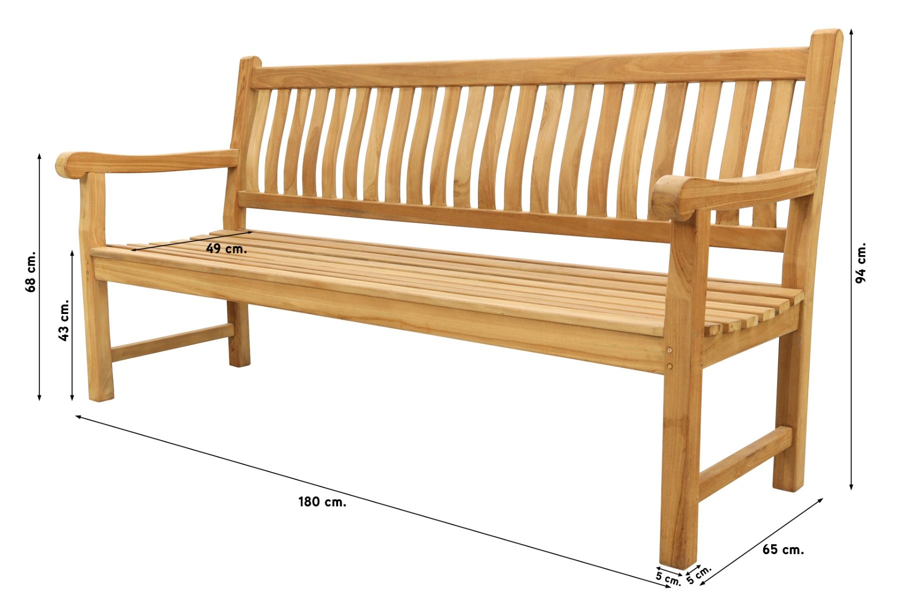 Teakhouten tuinbank Patrick - 180 cm. - Voorgevormde rugleuning