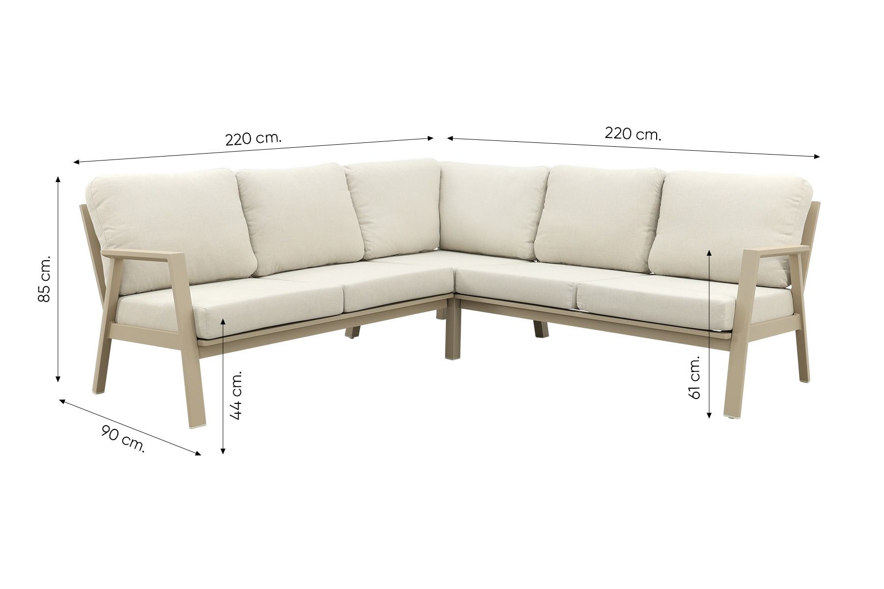 De Viento hoekbank is voorzien van zachte en goed gevulde kussens waarin je direct lekker zit. Ideaal voor een borrel, een kop koffie of gewoon even ontspannen na een lange dag. De hoezen zijn afritsbaar en eenvoudig schoon te maken, wel zo praktisch. Het aluminium frame in latte kleur is stevig, licht van gewicht en bestand tegen verschillende weersinvloeden. Hierdoor blijft de bank lang mooi en heb je weinig onderhoud.